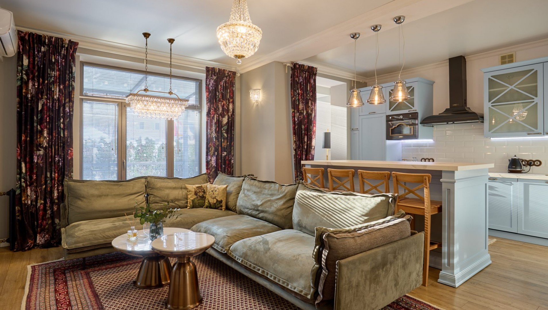 Dwupokojowe apartamenty znajdują się w luksusowym nowym domu niedaleko centrum miasta. Stąd tylko 10 minut niespiesznym spacerem do historycznej części Grodna, jednoczesnie to nowy rejon w całości zabezpieczony niezbędną infrastrukturą. Do Państwa usług płatny parking strzeżony, supermarket, centrum handlowe, apteka itd. Z okien tego luksusowego mieszkania otwiera się ładny panoramiczny widok miasta. Ekskluzywny wystrój wnętrz i wygodna lokalizacja nie zostawią obojętnym najbardziej wymagającego gościa. Państwo będą chcieli wrócić tu znów.